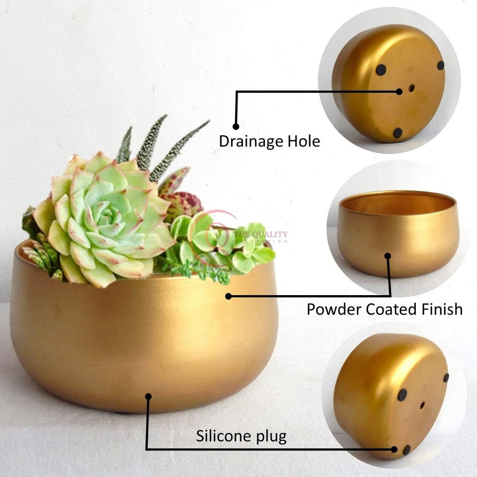 Elevate Shiny Gold Coastal Design Iron Metal Lightweight Handmade Floor Vase Planters for Faux Plants Succulents Air Plants Oval