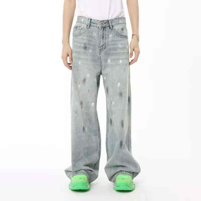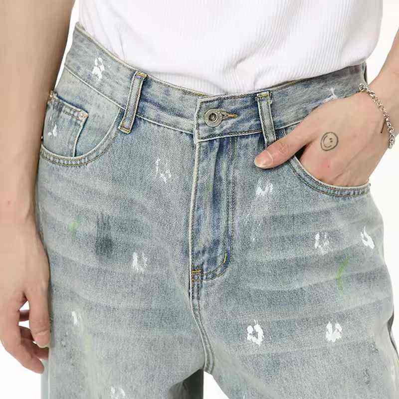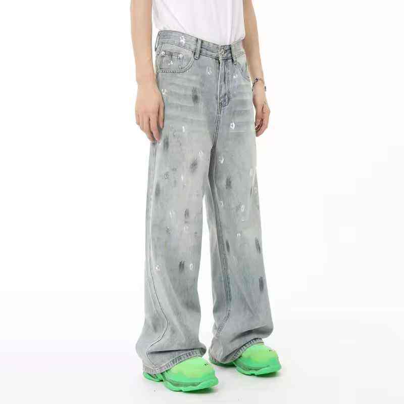 Elevate Your Personal Wardrobe With Artistic Rhinestone Patterns And Durable High Waisted Rhinestone Denim Pent