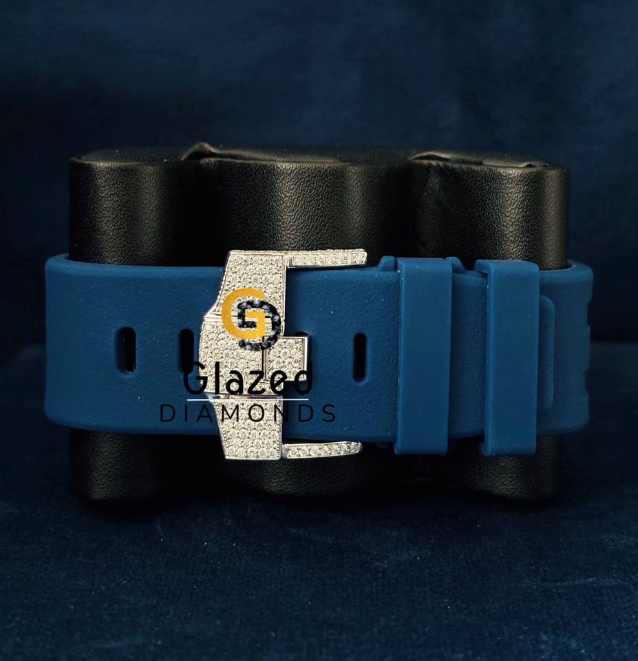 Elevate Your Style With Our Cutting Edge Iced Out Blue Rubber Band Watch Meticulously Studded Moissanite Diamonds VVS Clarity