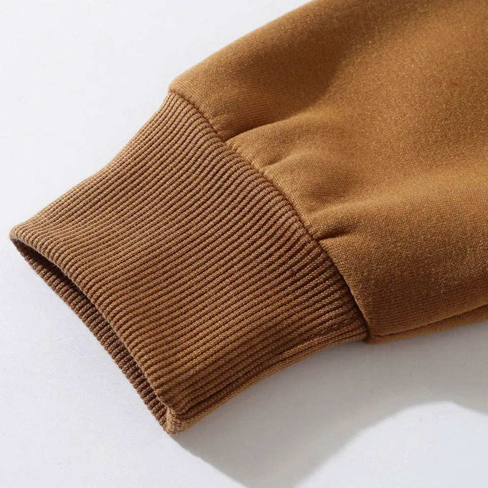Elevate your casual wardrobe with this men's tracksuit set in a rich brown color. The set includes a cozy pullover hoodie