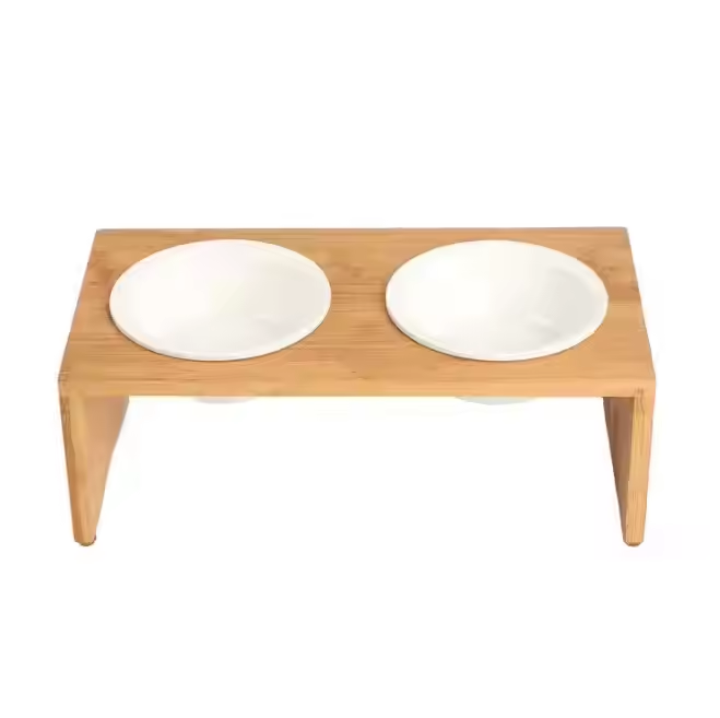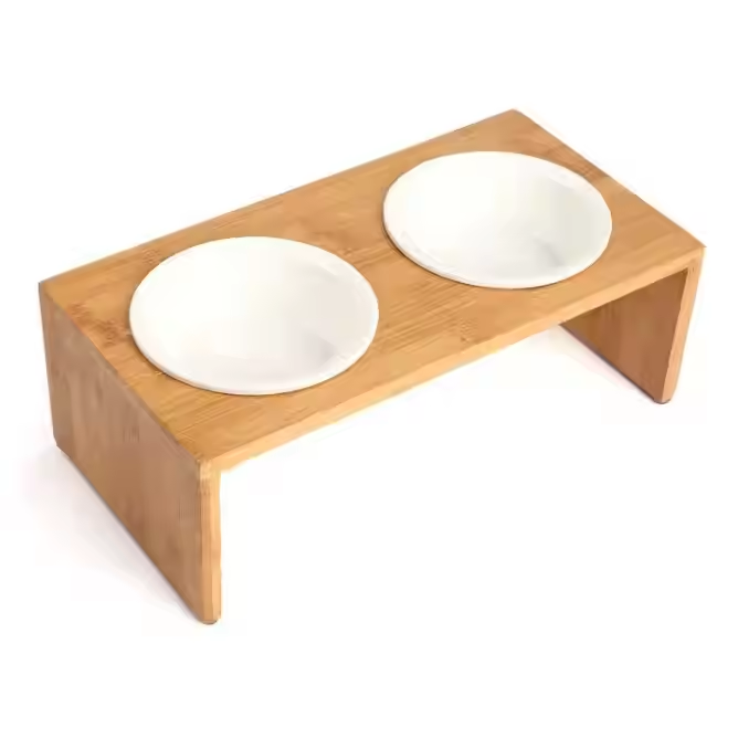 Name:Elevated Bamboo Dog Feeding Station with 2 Bowls