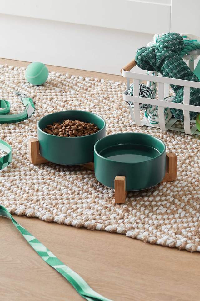 Elevated Ceramic Cat Bowls with Natural Bamboo Stand Double Feeding Set for Indoor Cats Small Pets Wholesale FT05