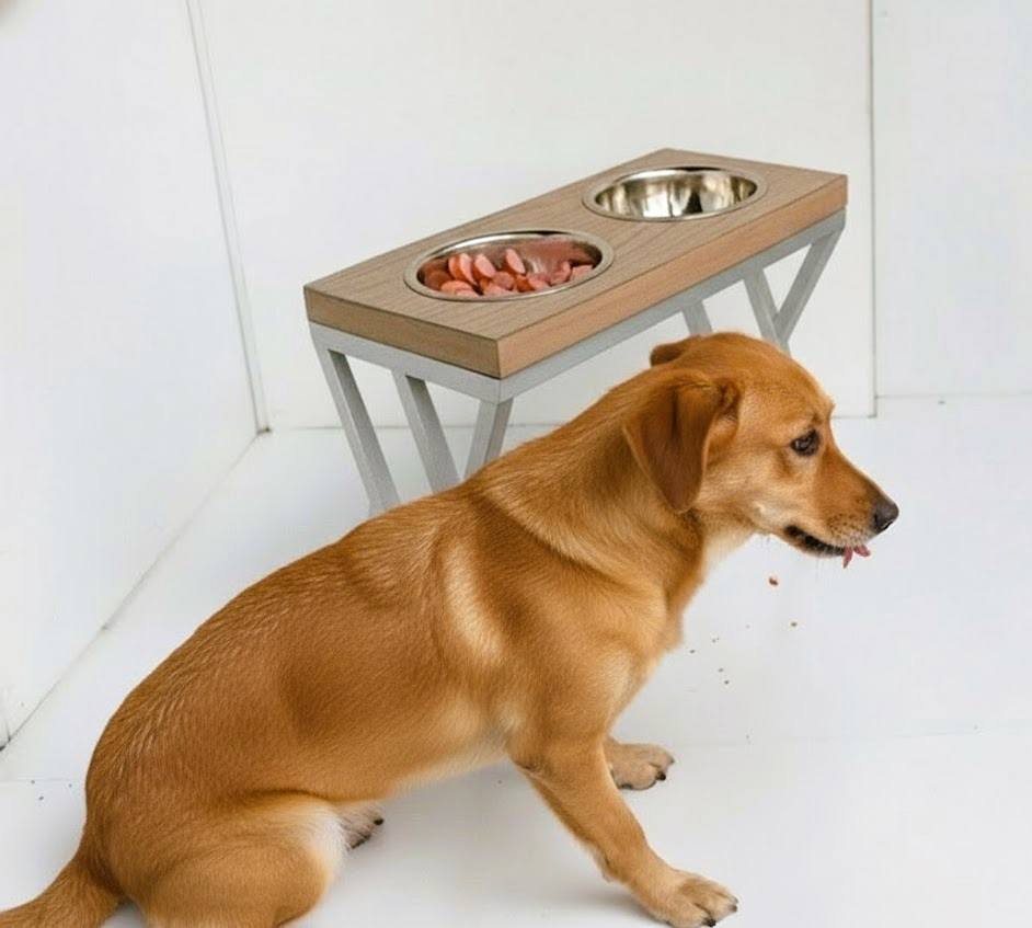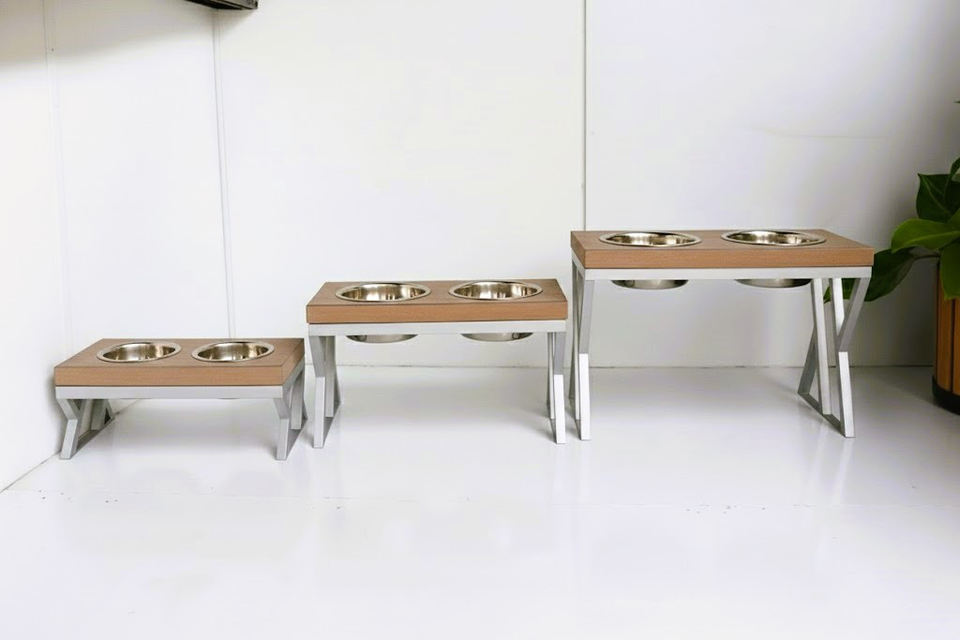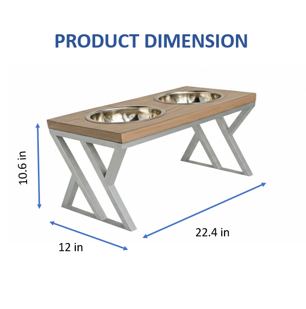 Elevated Dog Feeder Wood Top Metal Legs Double Stainless Steel Bowls Dogs Cats Stylish Durable Portable Waterproof Pet Furniture