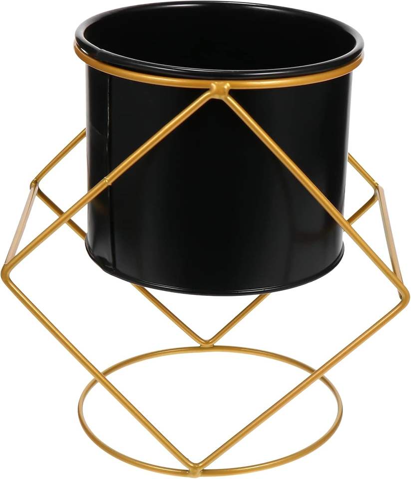 Product Name:Elevated planter with stand Matt Black & Gold Finish