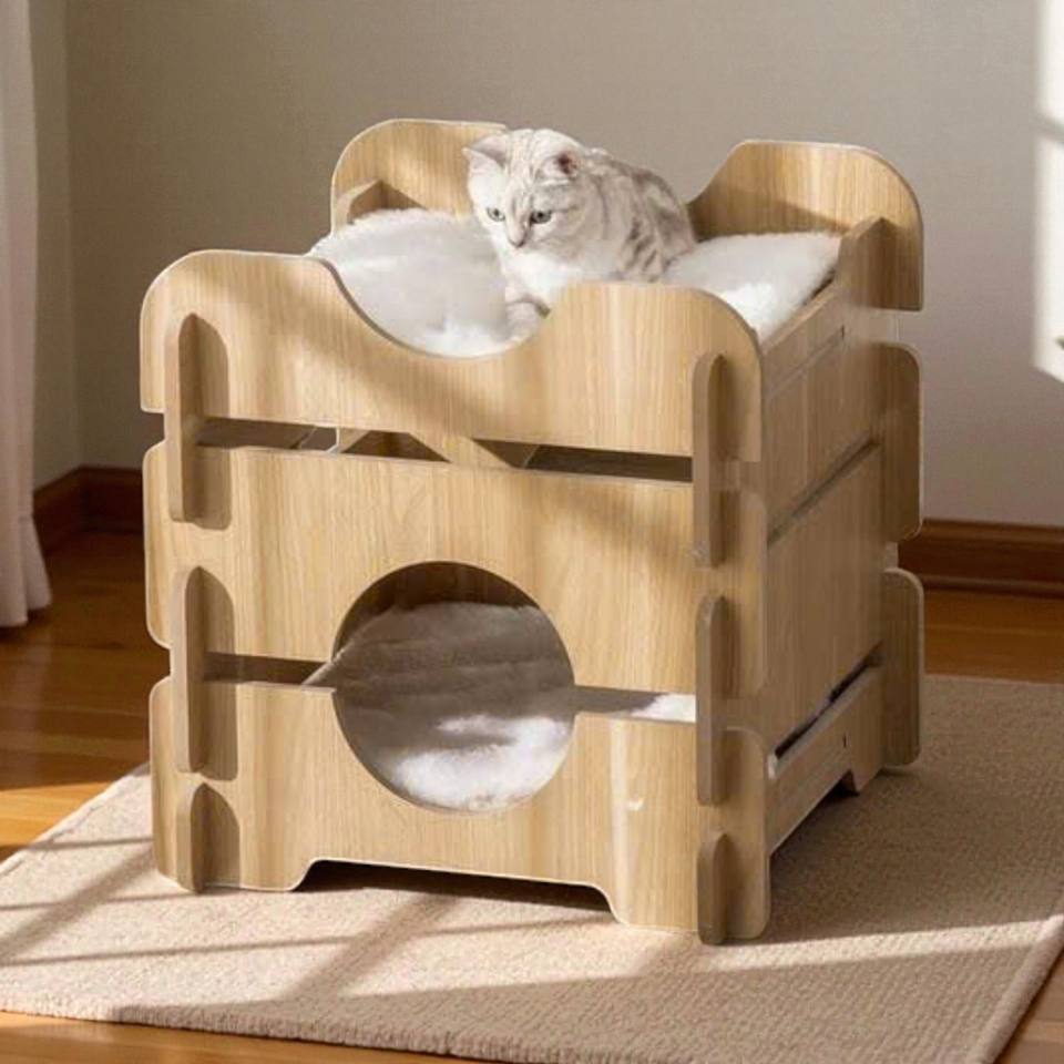 Elevated Wooden Cat House For Indoor Cats With Easy Assembly Flat Pack Structure From Vietnam Oem Manufacturer Model AC04