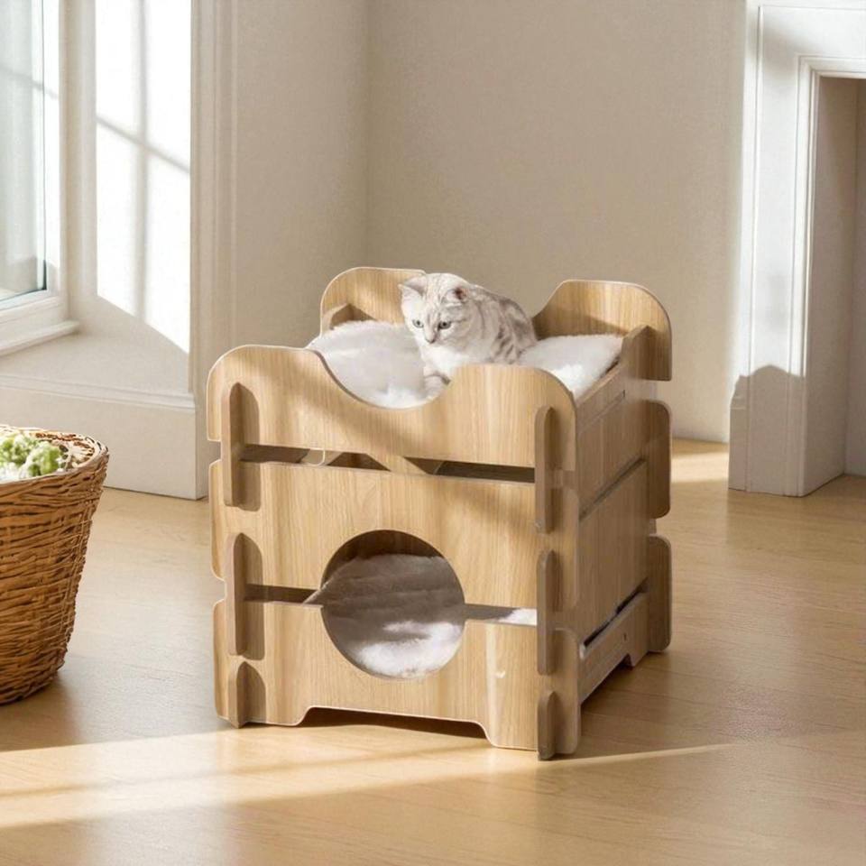 Elevated Wooden Cat House For Medium Indoor Cats Easy Assembly Fsc Pine Wood Vietnam Oem AC04