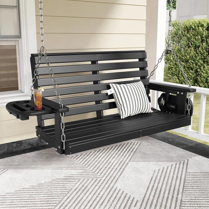 Elias Comfortable Solid Wood Steel Pergola Swing Bench Modern Farmhouse Style Outdoor Living Room Courtyard Patio Furniture Park
