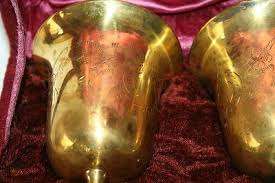 Elijah Prophet Brass Kiddush Cup Israeli Jewish Blessing Wine Goblet with Engraved Blessings Durable Metal Material