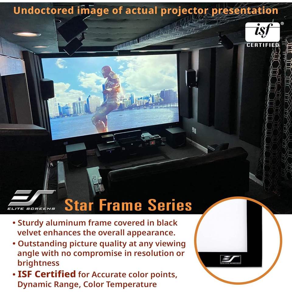 Elite Screens 100\" Wall Mount Fixed Frame Projector Screen 16:9 Diagonal 8K/4K Ultra HD Ready Aluminum Frame PET 3D Projection