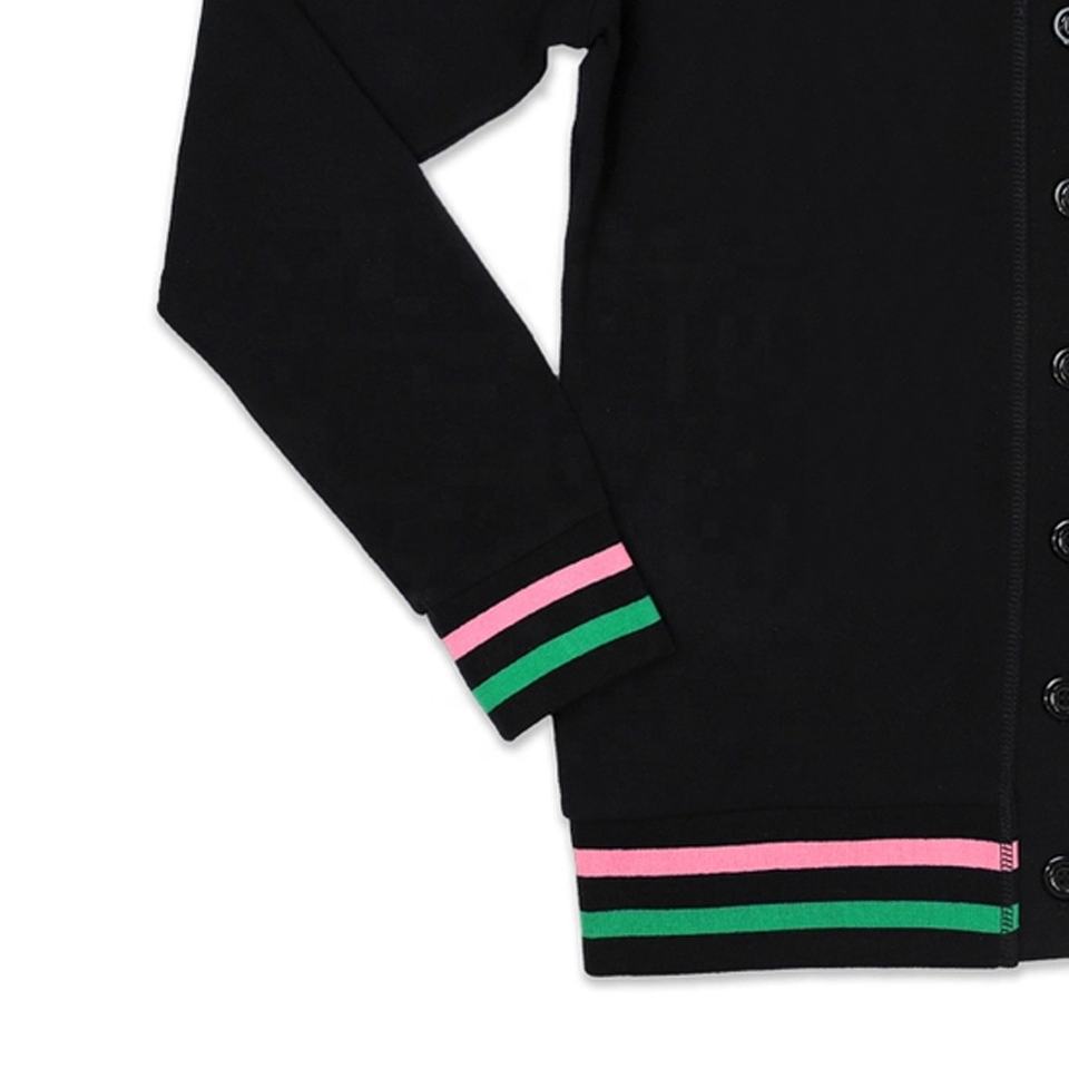 Elite Style Casual Cardigan Black Sororities College Sweaters Patchwork Designs Front Covered Button V-neck Breathable