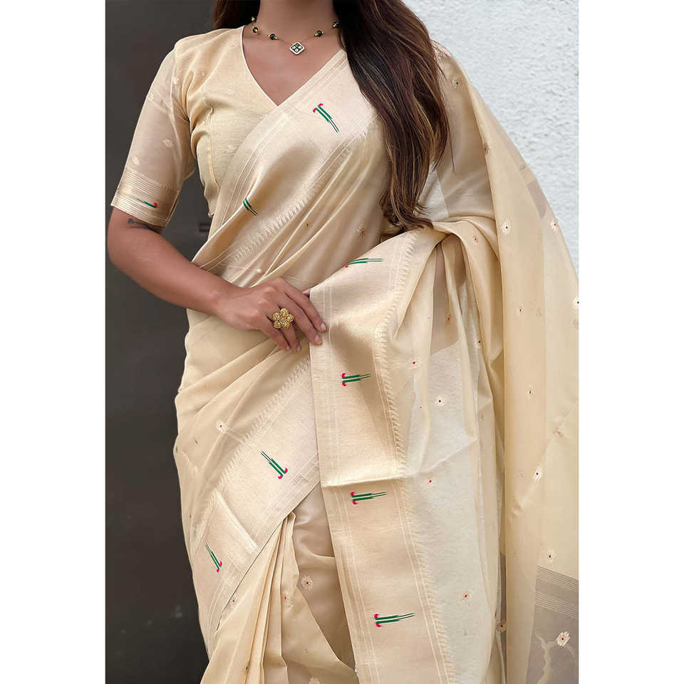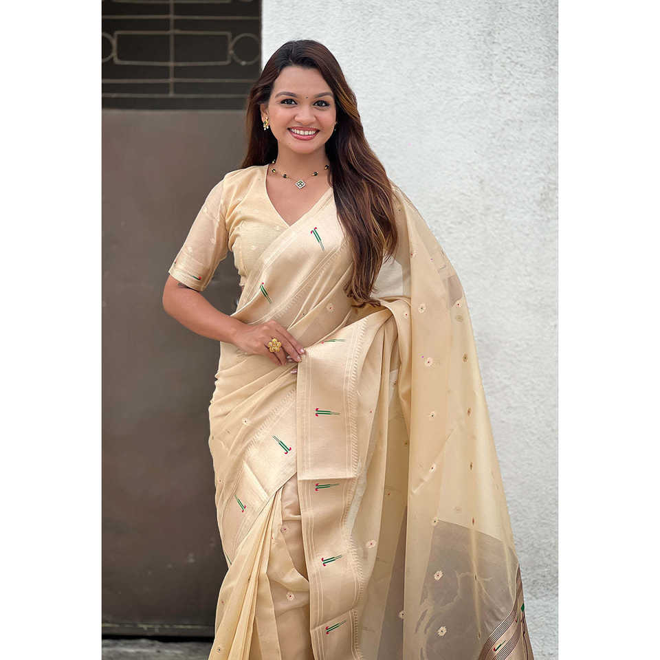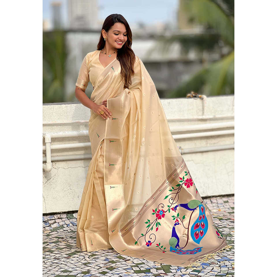 Elite Weaves Chickoo Organza Paithani Zari Woven Evening Saree