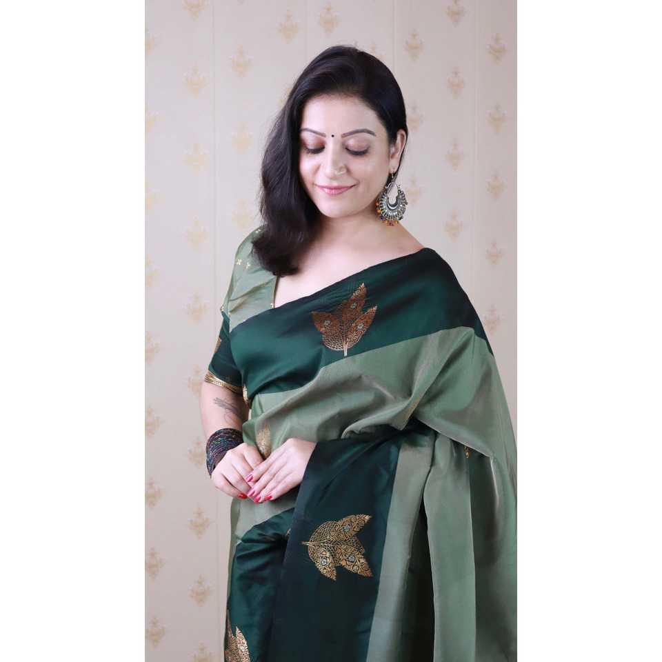 Elite Weaves Dusty Concept Floral Zari Woven Saree Grey Soft Silk Sari with Elegant Zari Work 650g