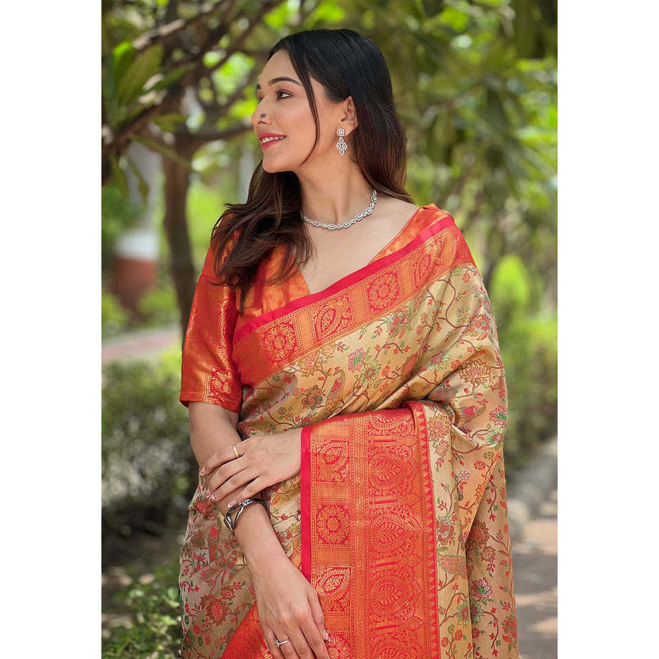 Elite Weaves Original Red Dharmavaram Silk Saree Traditional Zari Woven Ethnic Shawl 0.65g