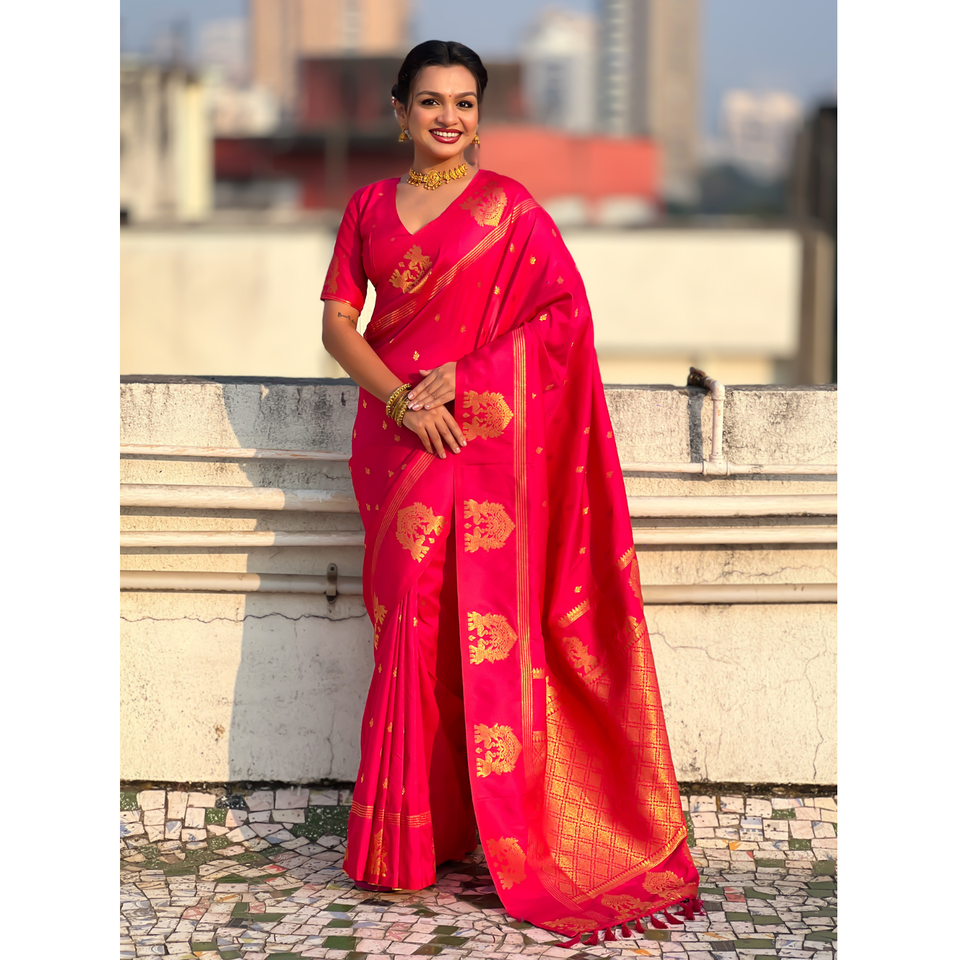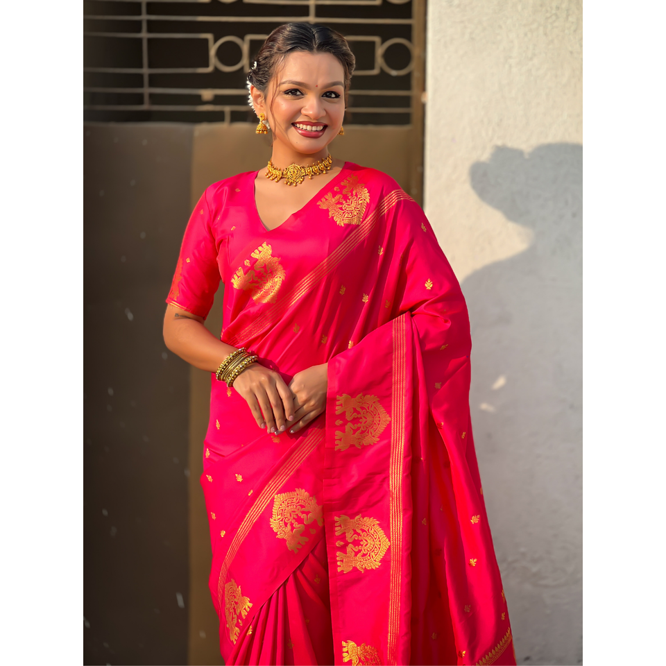 Elite Weaves Pink Soft Silk Traditional Zari Woven Saree Elegant Scarf and Shawl 600g