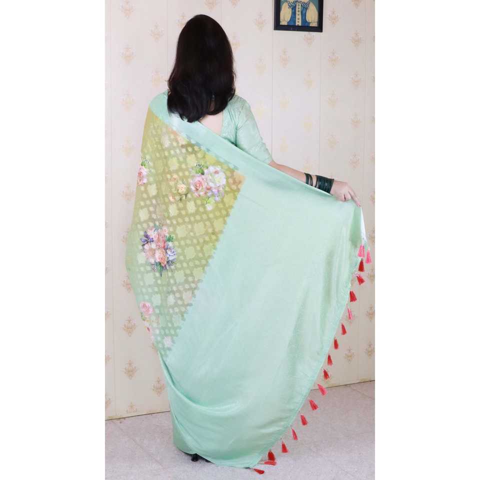 Elite Weaves Pista Soft Georgette Floral Printed Zari Woven Saree Indian & Pakistani Clothing 450g