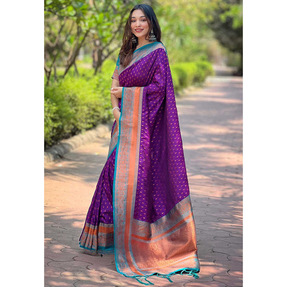 Elite Weaves Purple 1000 Butti Zari Woven Paithani Silk Saree with Contrast Indian & Pakistani Clothing
