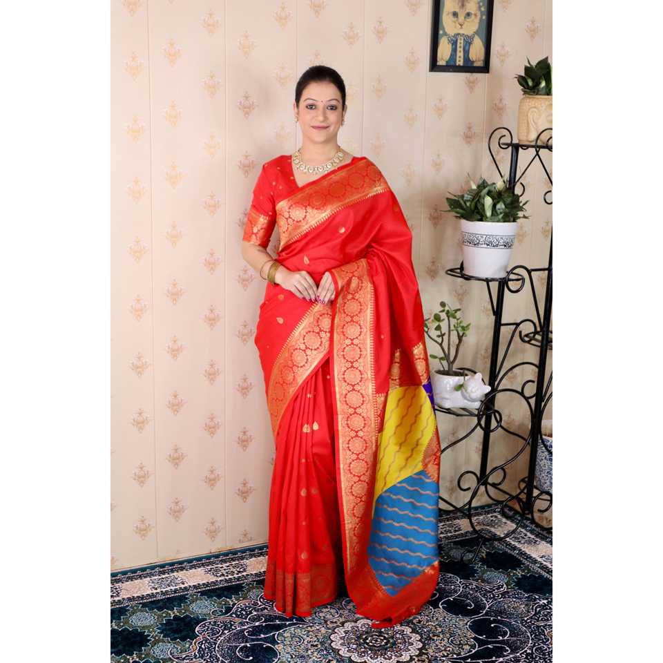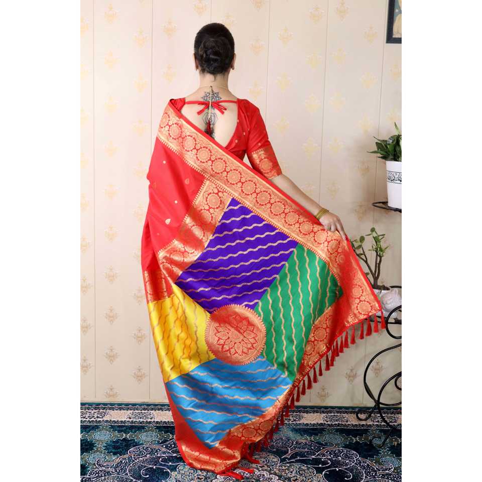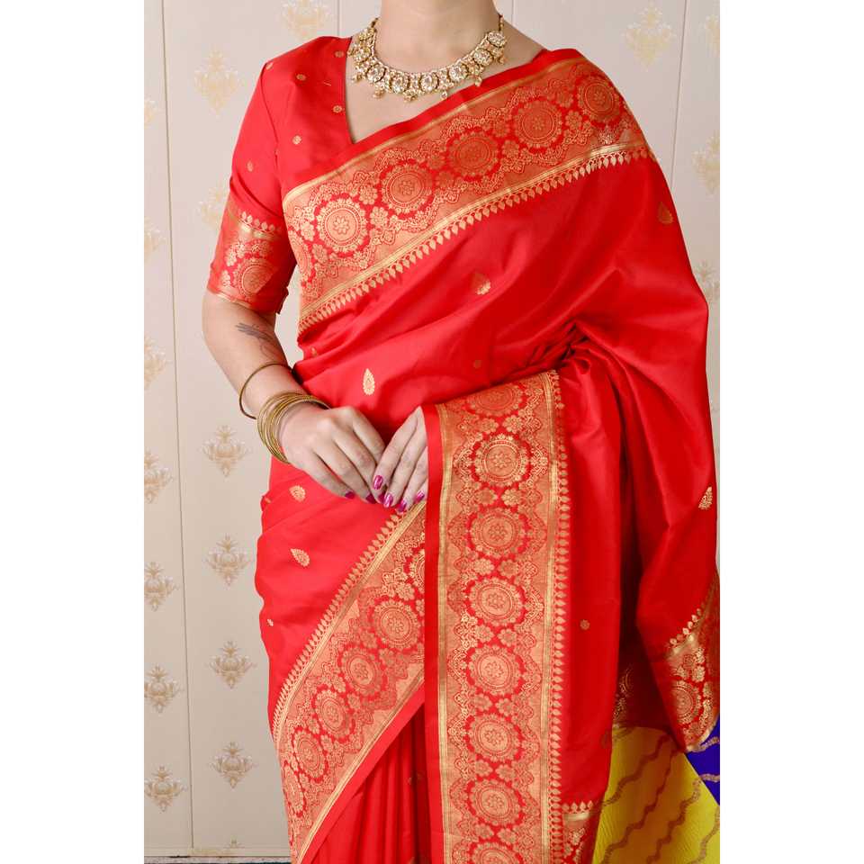 Elite Weaves Red Banarasi Multicolor Pallu Zari Woven Saree with Soft Silk Indian & Pakistani Clothing 650g