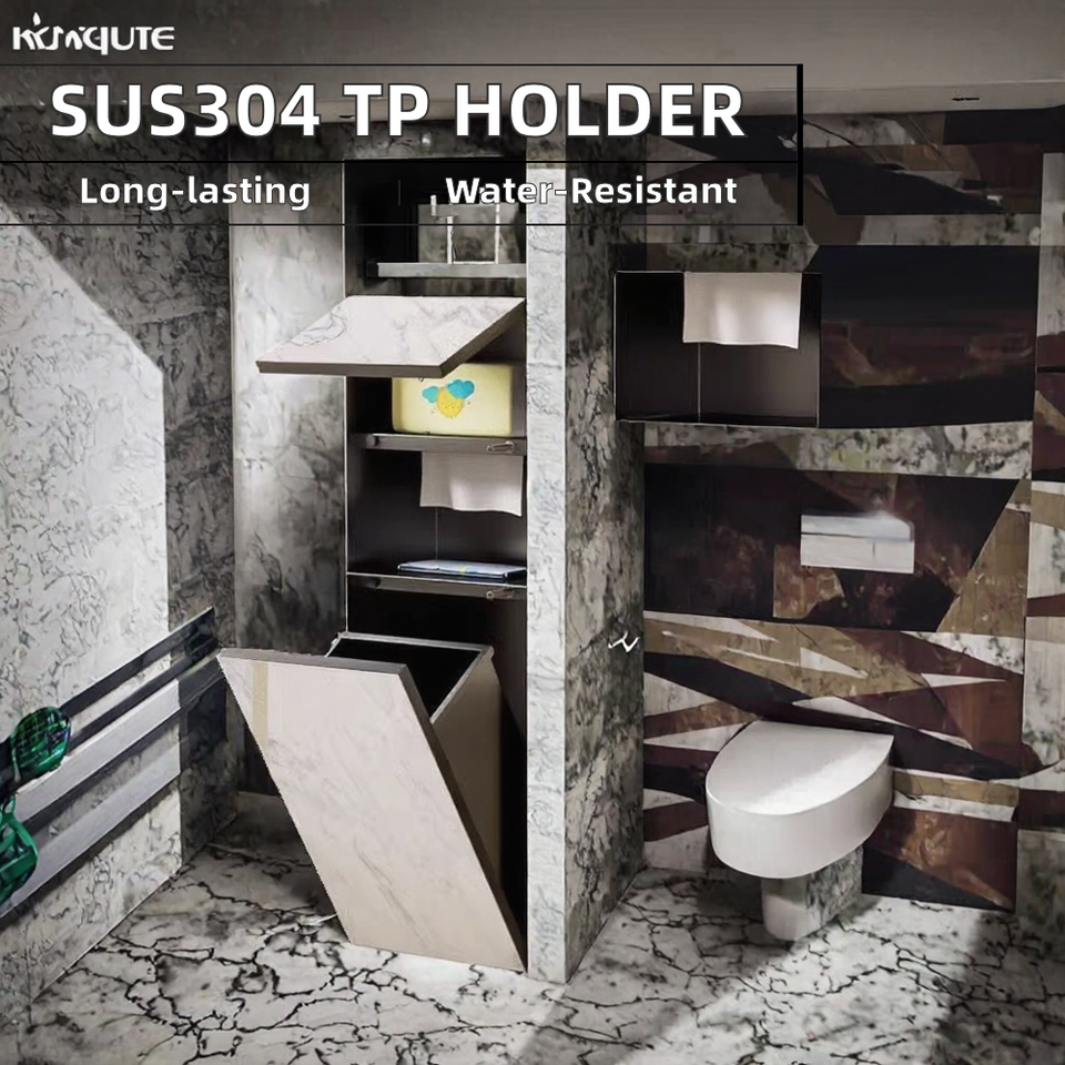 Embedded Dual Tier Modern SUS304 Stainless Steel Toilet Paper Roll Holder Trash Can Niche Recessed Corner Bathroom Storage Bin