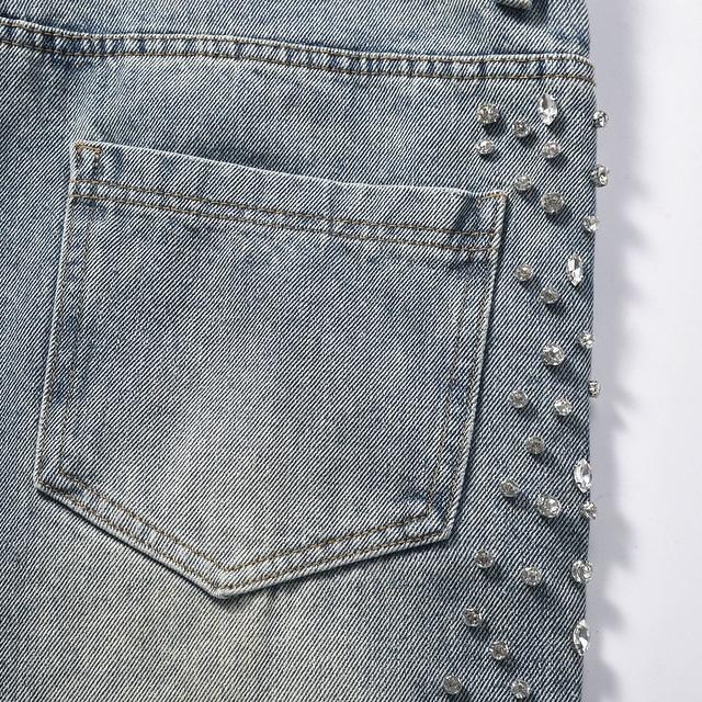Embellished Y2K for Leather Jacket Rhinestone Side Seam for Canvas Plus Size Loose Straight Leg Light Wash Waterproof