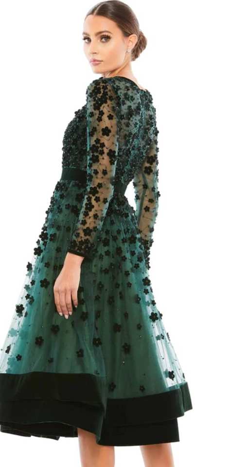 V-neck Embellished Beading Illusion Elegant Mature Women Cocktail Dress Long Sleeve Fit Flare Waist Embroidery Pearl Night Club