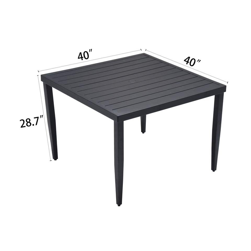 Ember Black 40"x40" Aluminum Square Dining Table with Tapered Feet & Umbrella Hole for Outdoor Patio Furniture