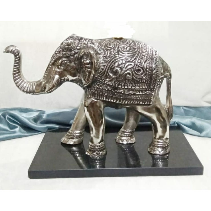 Embossed Aluminum Elephant with Black Marble Base Decorative Antique Animal Figure by RGN Exports