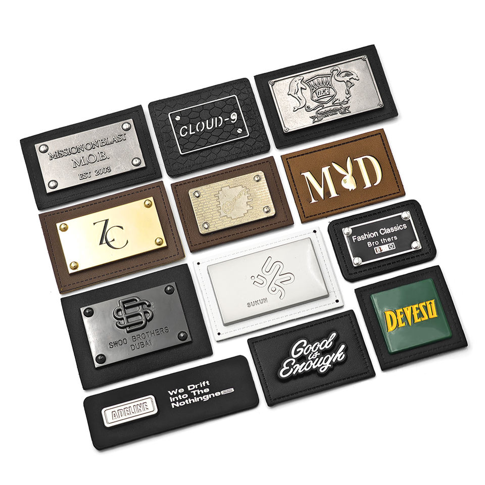 Leather label with metal