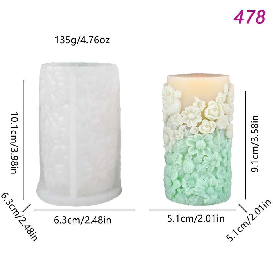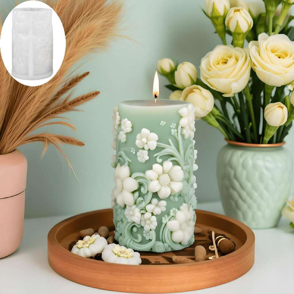 Embossed Bouquet Cylindrical Flower Aromatherapy Candle Baking Decoration Gypsum Candle Silicone Mold