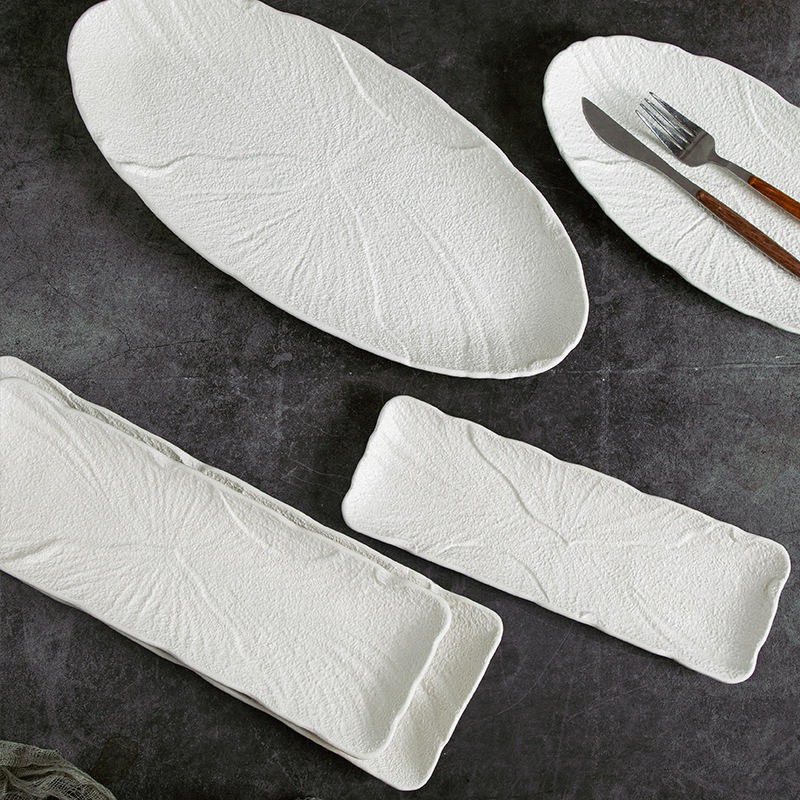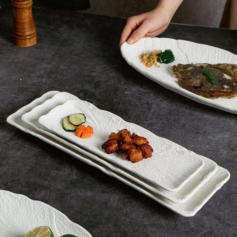 Embossed Ceramic Sushi Plate Rectangle Frosted Bread Fish Seafood Dessert Fruit Salad Serving Tray Platter Restaurant Tableware