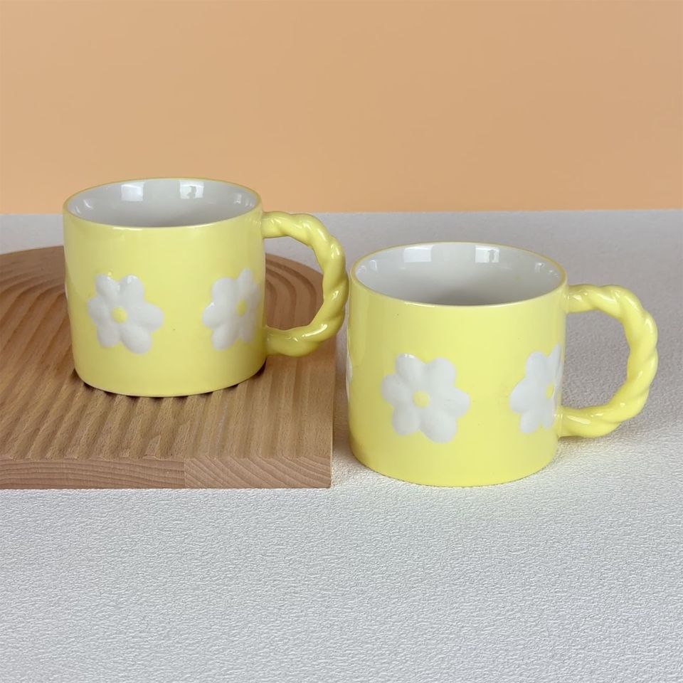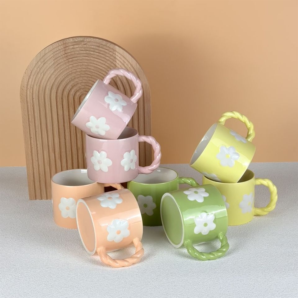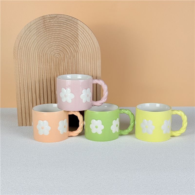Embossed Colorful Ceramic Cute Design Eco-friendly Dishwasher Microwave Safe Reusable Coffee Mug Good Quality Porcelain AB Grade