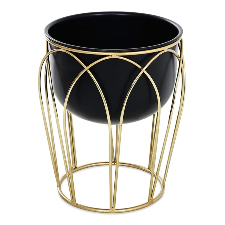Embossed Copper Metal Planter with Black Stand Decorative Flower Pot Holder for Indoor Home Office Living Room Garden Display