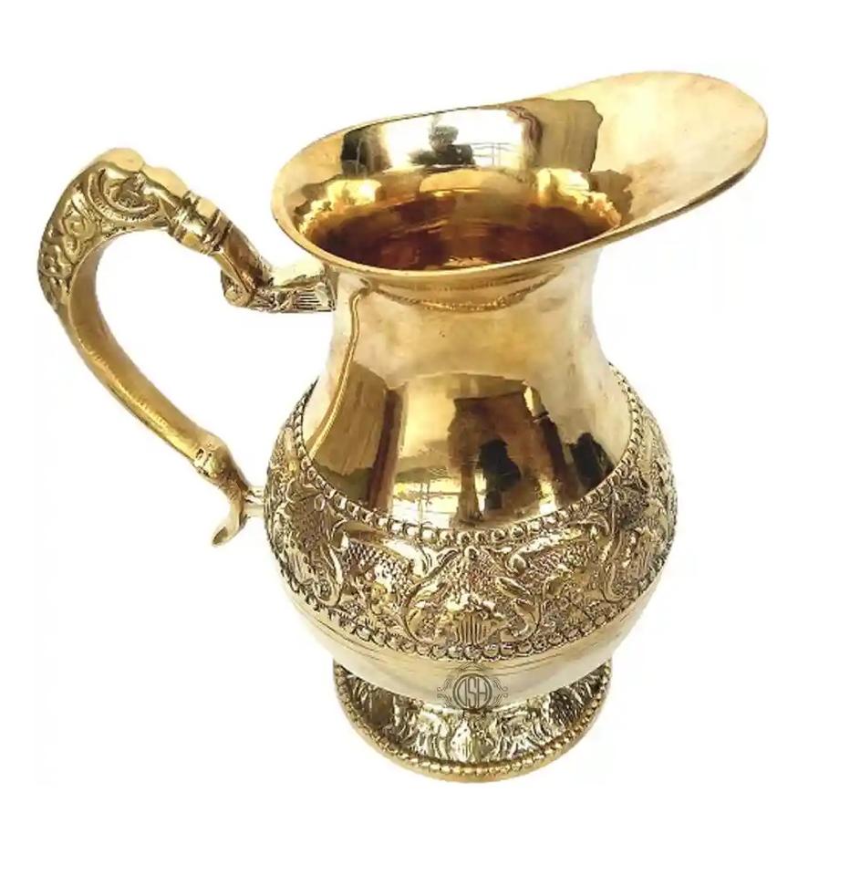 Embossed Design Brass Finished Metal Water Pitcher Hand Crafted Water Pitcher High Quality Products Custom Price and Packing .