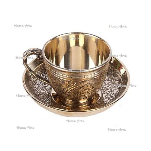 Embossed Design Brass Tea Saucer Set Customized Shape And Size Tea Cup And Saucer With Prime Quality