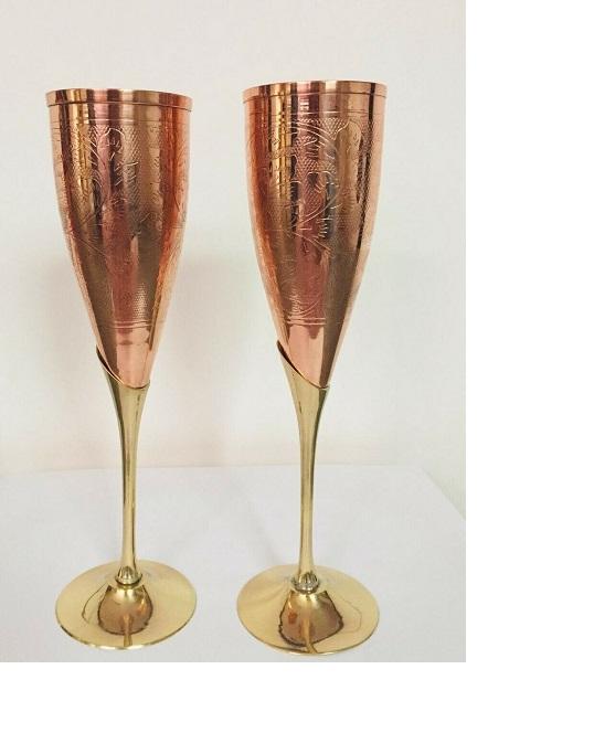 Embossed Design Copper Goblet With Brass Flutes Coupes for Beer Wine Drinking Luxury Bar & Hotel Use