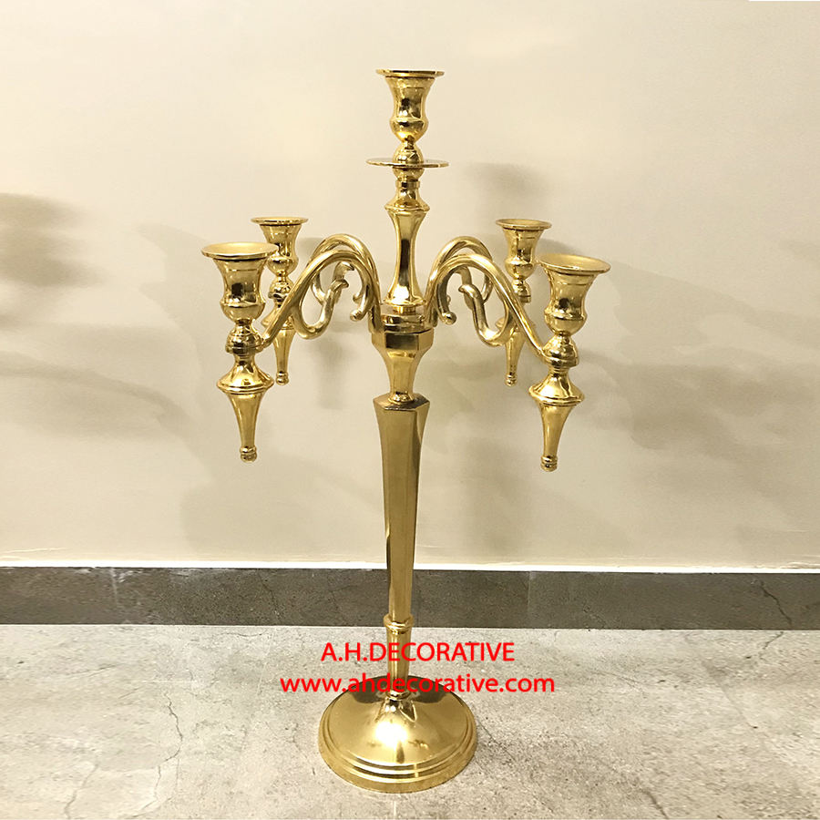 Embossed Long Stem Candelabra 4 Arms with Flower Bowl for Wedding Centerpieces Elegant Gold Antique Embossed Handmade Candelabra