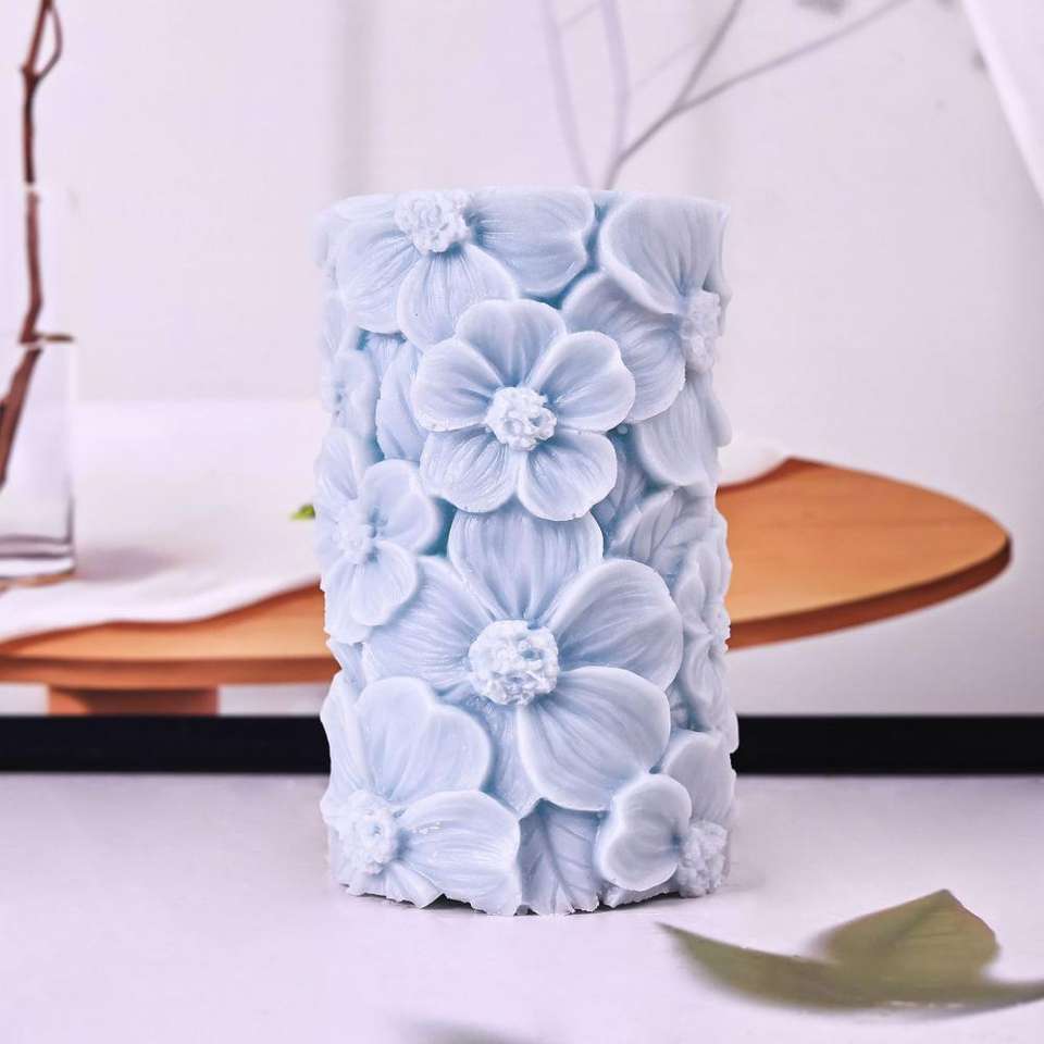 Embossed Pattern Cylindrical Aromatherapy Candle Rose Diffuse Handmade Soap Gypsum Candle Silicone Mold