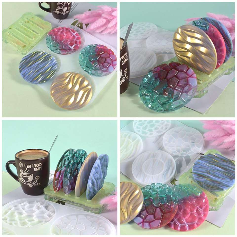 Embossed Printed Coaster Storage Irregular Coaster Set Resin Silicone Mold