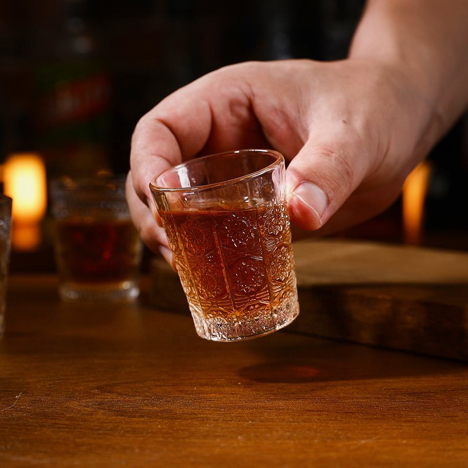 Embossed Shot Glass Cup Mini Whiskey Tasting Glasses Vintage Snifters 2oz Shot Glasses