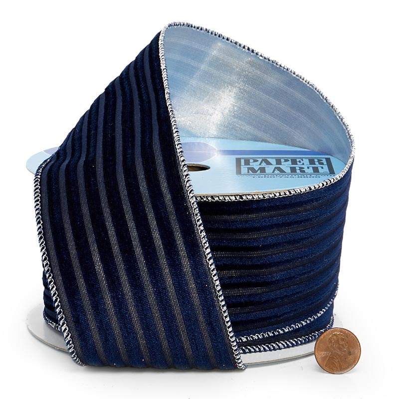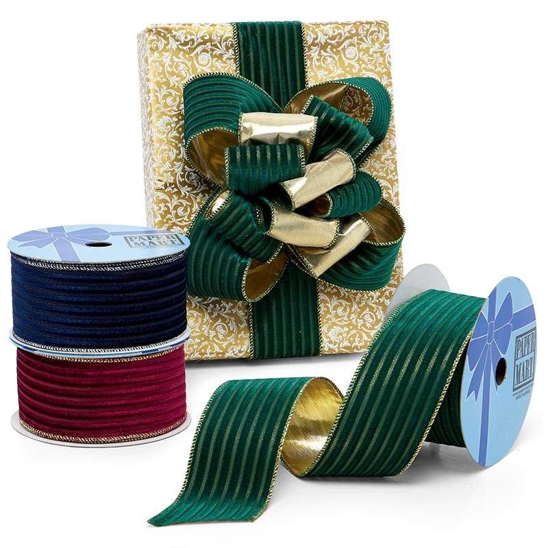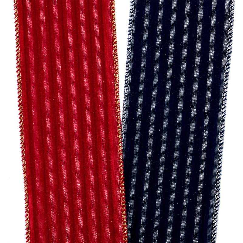Embossed Stripes on Velvet Wired Ribbon Metallic Polyester Stretch Loop for Christmas & Birthday Gift Wrapping & Decoration