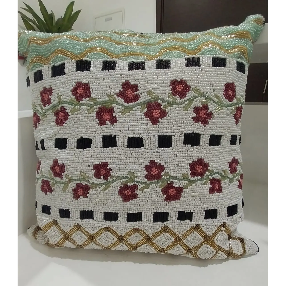Embroidered Beaded Cushions Flower Leaf Design Beaded Pillow Covers for Sofa Living Room Bed Room Handmade Decorative Beaded