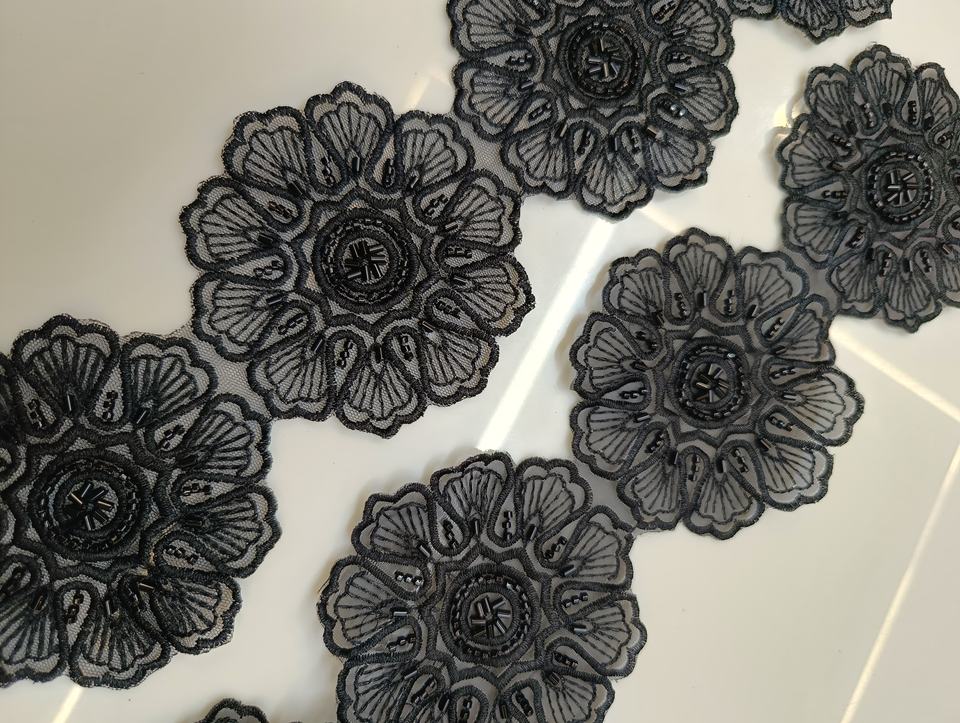 Embroidered Beaded Paisley Lace Applique Floral Pattern Sew-On Trim for Bags Black Garment Patch with Floral Design