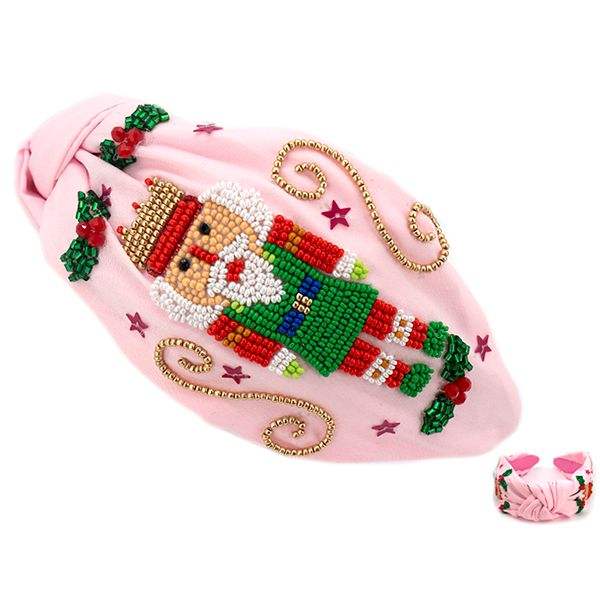 Embroidered Christmas Seed Bead Hairband For Fashion Stores Christmas Seed Beaded Embellished Hairband Custom Pattern