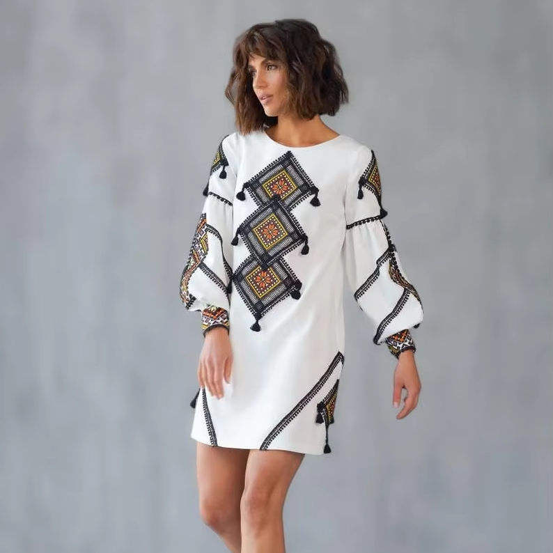 Embroidered Cream White Mini Dress Vyshyvanka Ukraine Folk Dress For Women Rustic Boho Wedding Clothing Handmade S M L
