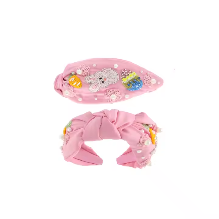 Embroidered Easter Headband With Bunny And Egg Designs Featuring Colorful Seed Beads And Decorative Holiday Knot Style