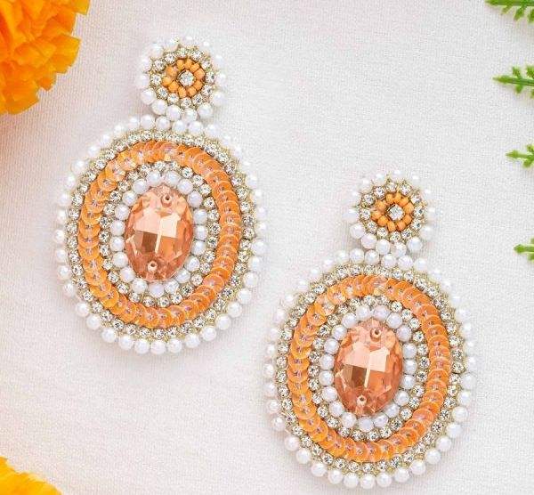 Embroidered Fabric & Bead Earrings Custom Multi-Beaded Earrings Women Festive Party Jewelry At Best Price Beaded Earrings