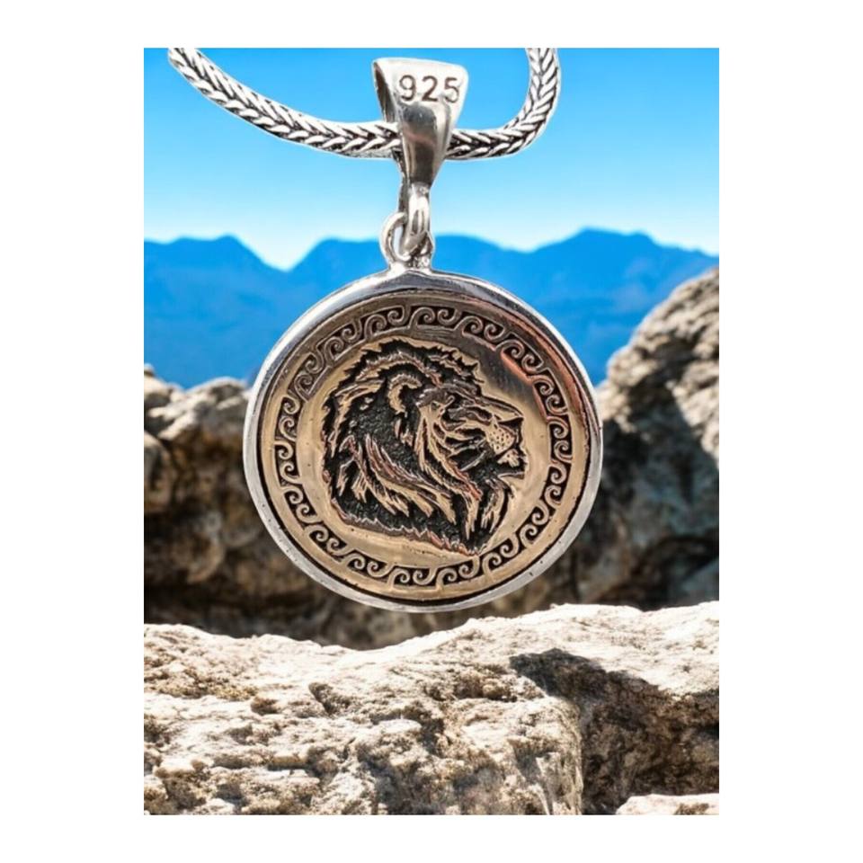 Embroidered Lion Motif 925 Sterling Silver Necklace - Symbol of Strength