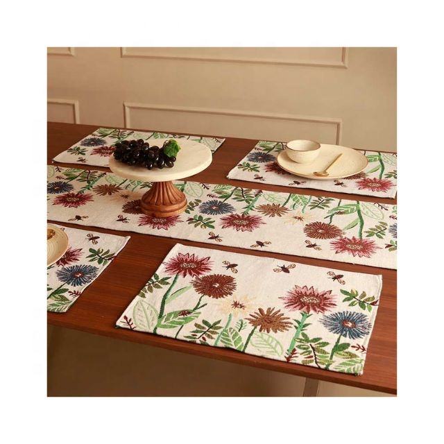 Embroidered Maple Leaf Digital Cotton Tablecloths Heat-resistant Waterproof Detergent Safe Dining Table Decor Kitchen Supplies