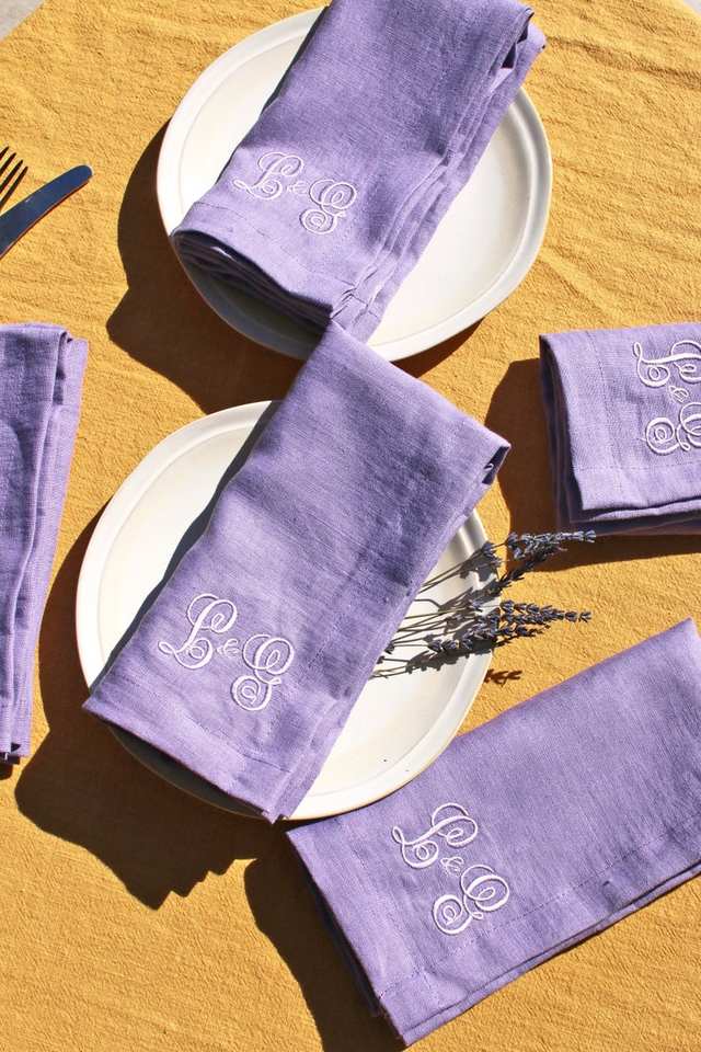 Handmade Embroidered Linen Napkins Monogrammed Personalized Dinner Wedding Anniversary Napkins Perfect Gift Idea