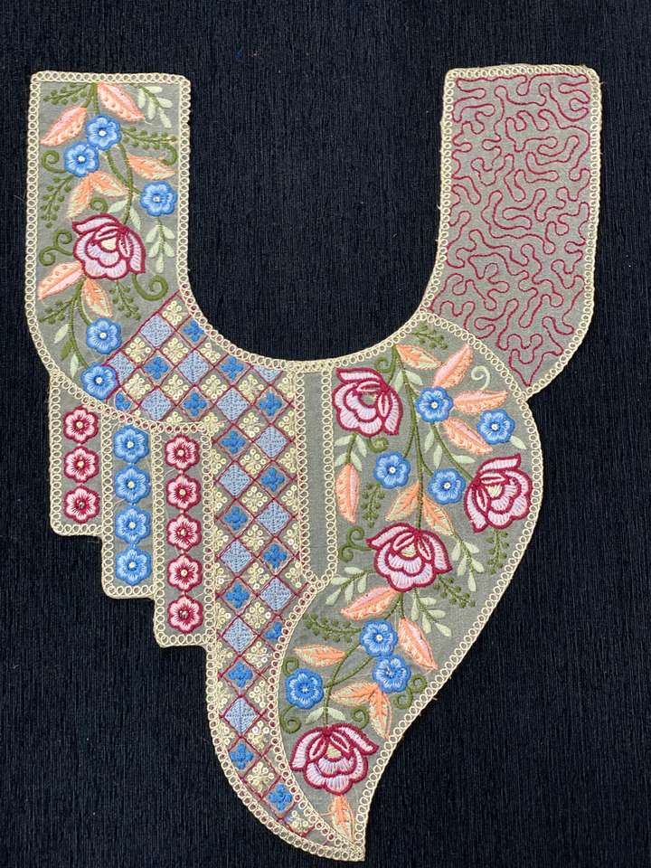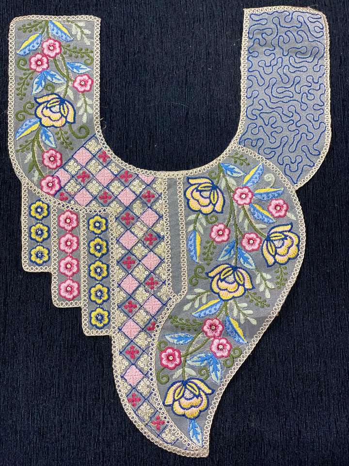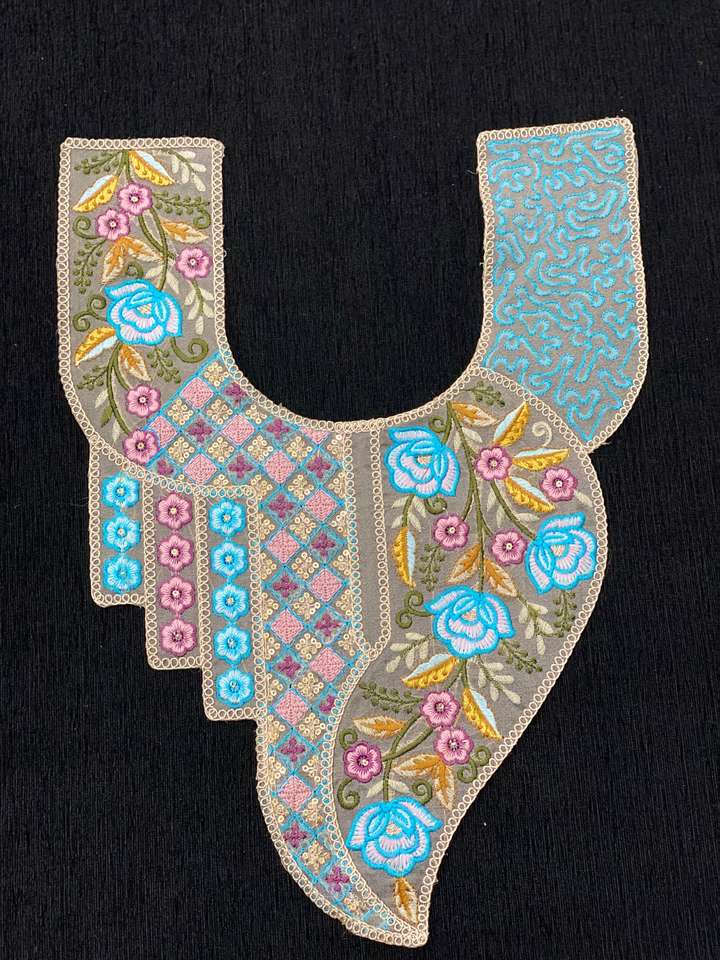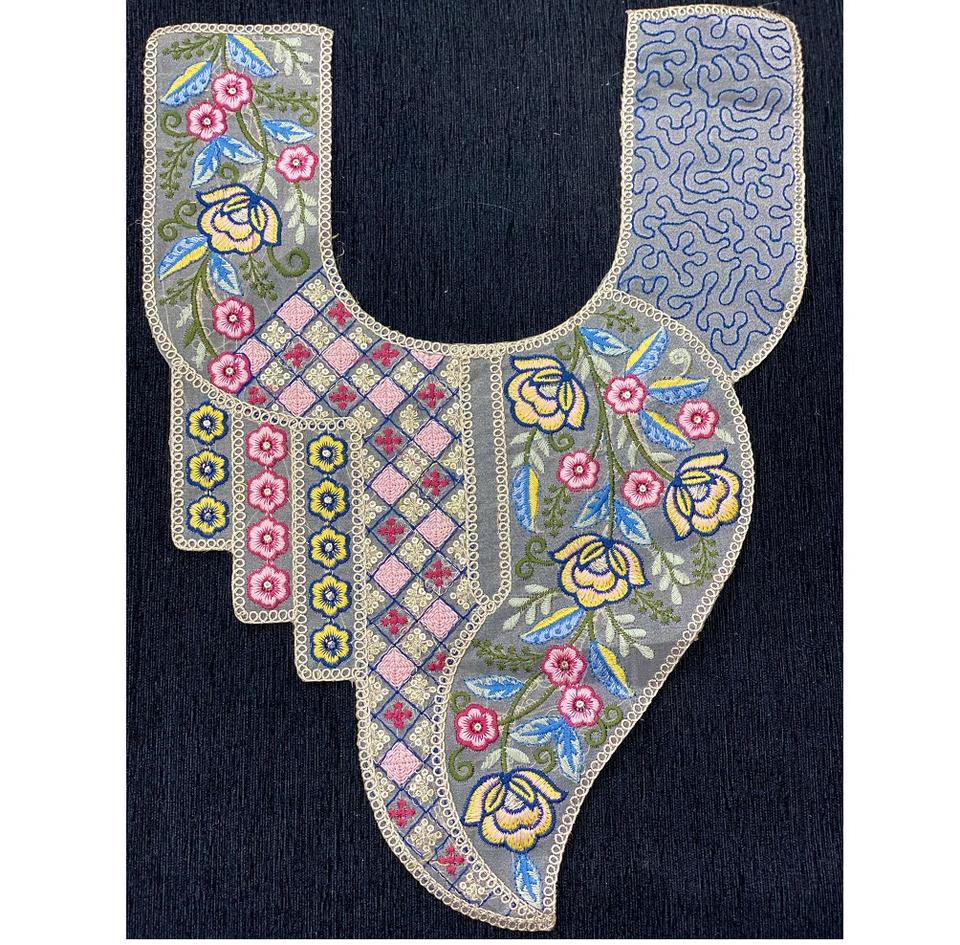 Embroidered Neck Patch / Applique for Kurti, Dress, and Garment Decoration Floral multicolor embroidery with artistic patterns
