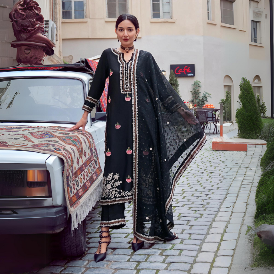 Embroidered Shirt Front of HandKhaddi Pure Cotton Net With Embroidery Borders. Plain Shirt Back of HandKhaddi Pure Cotton Net